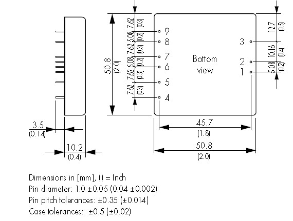 TEN40-1210 features: (1)High Power Density: 40W in a 51x51x10mm (2”x2”x0.4”) Package; (2)Wide 2:1 Input Voltage Range; (3)Models with Single-, Dual- and Triple Output; (4)Models with 2 independently regulated 3.3 and 5.0 VDC Outputs; (5)Extended Operating Temperature Range: –40℃ to +85℃; (6)Over Temperature Protection; (7)Under Voltage Lockout; (8)Remote On/Off; (9)Shielded metal Case with insulated Baseplate; (10)Optional Heatsink; (11)Lead free Design - RoHS compliant; (12)3 Years Product Warranty.